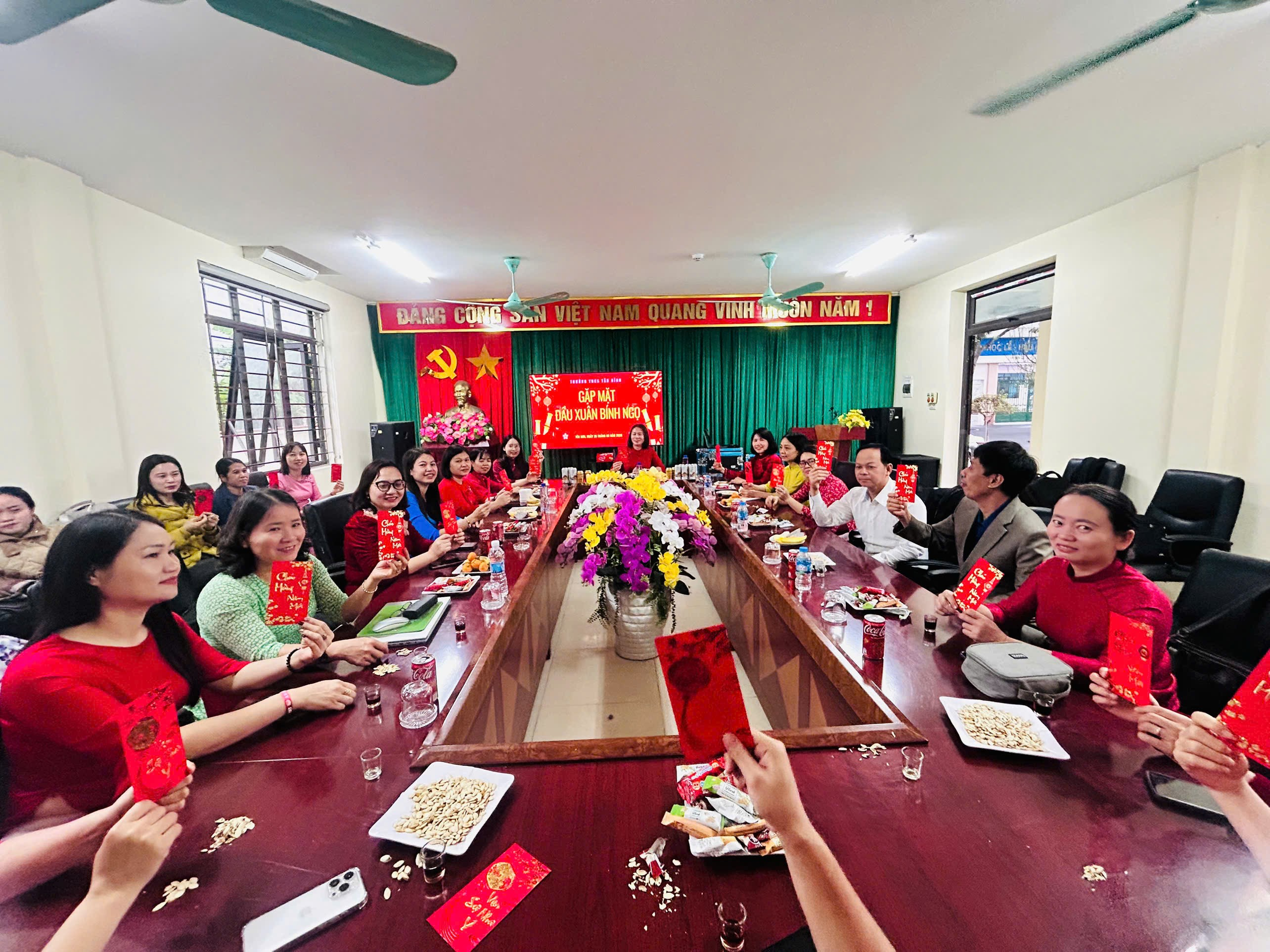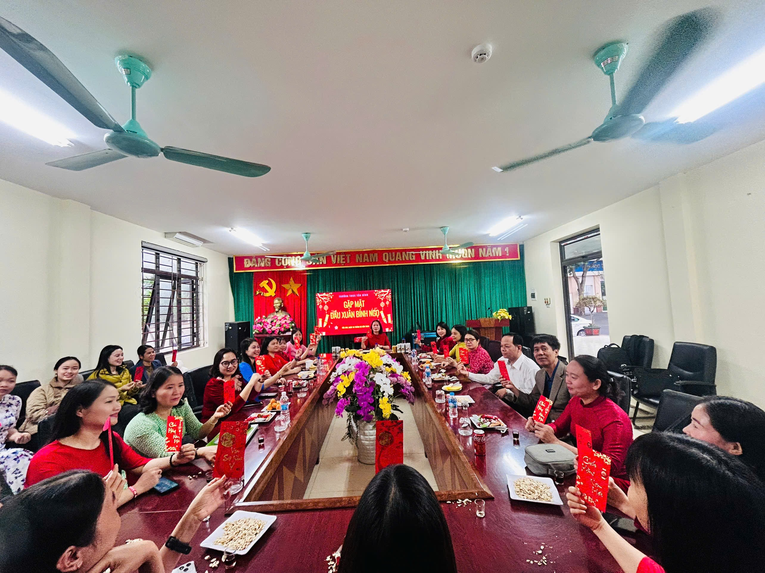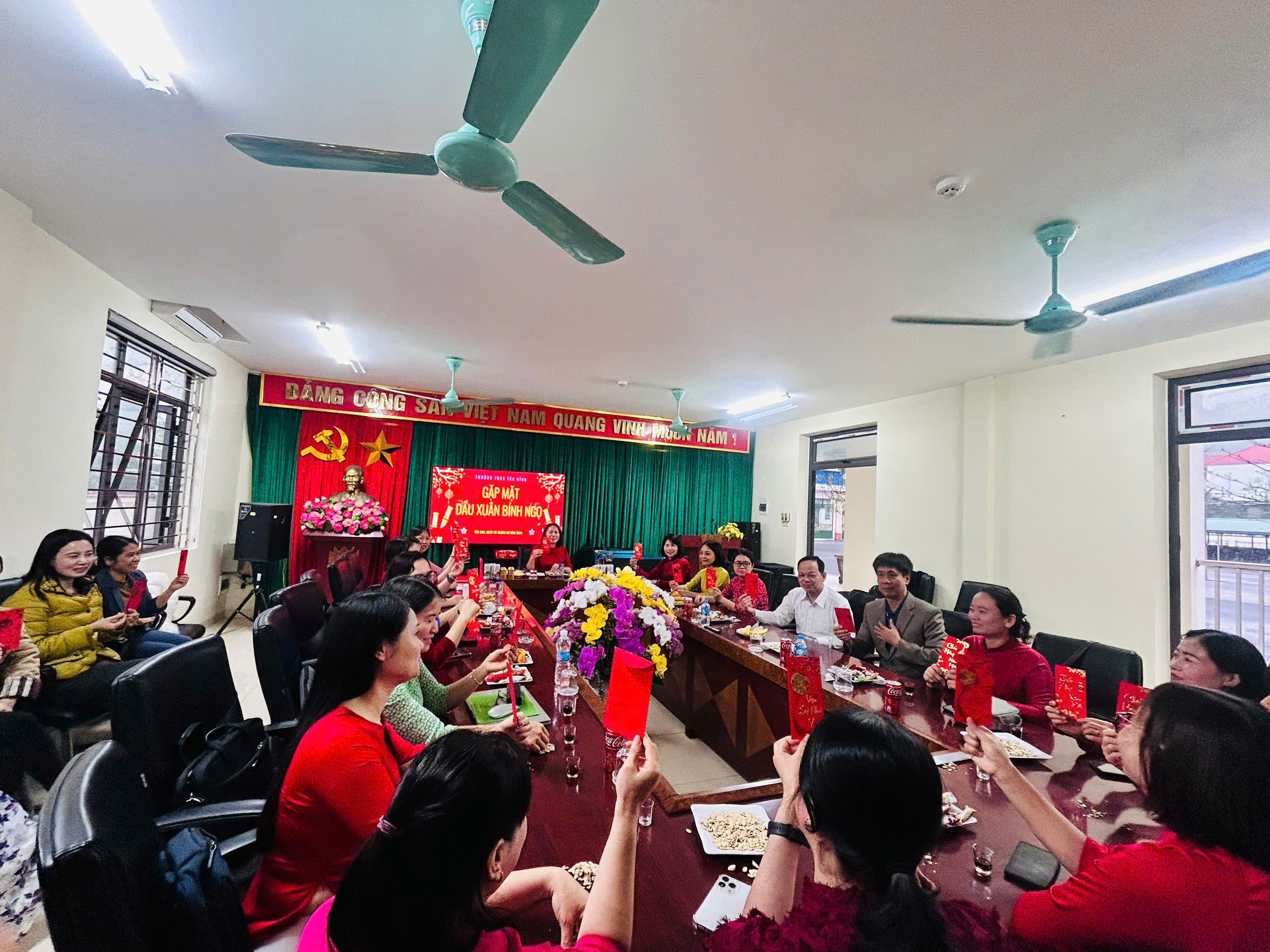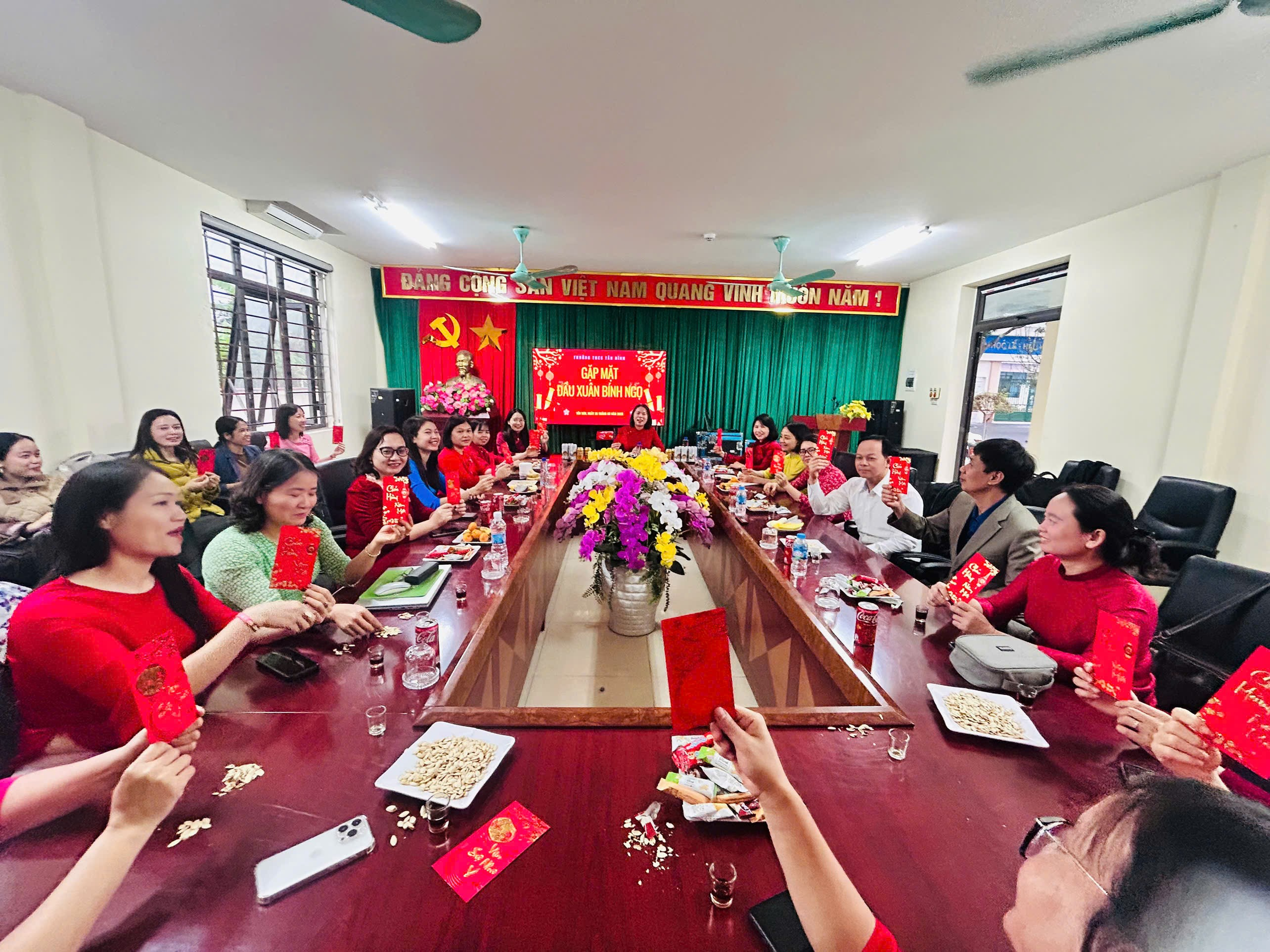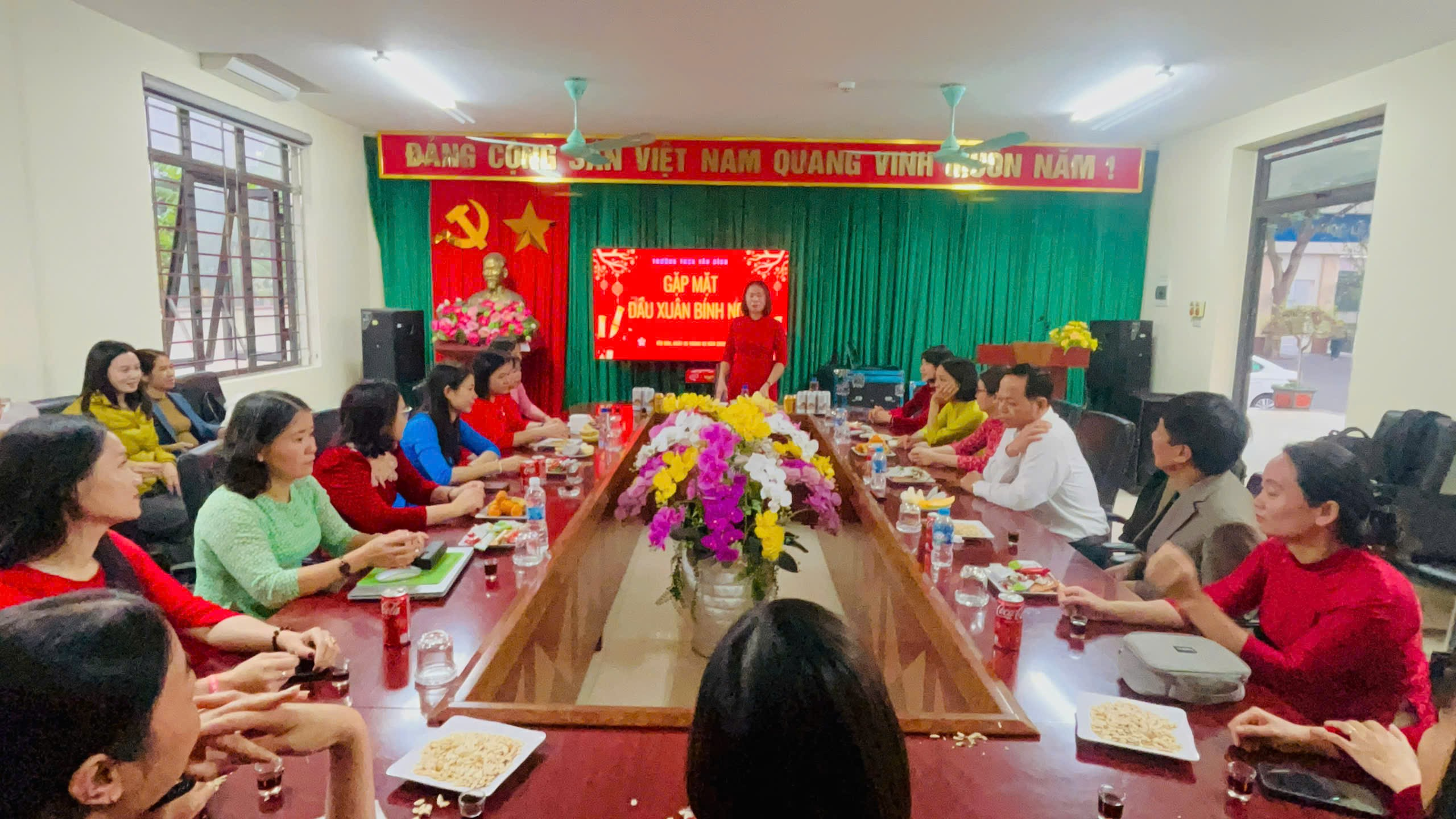 🌸 Tại buổi gặp mặt, đồng chí Phạm Thị Hường – Hiệu trưởng nhà trường đã gửi lời chúc mừng năm mới sức khỏe, hạnh phúc và bình an đến toàn thể hội đồng sư phạm. Đồng chí ghi nhận sự nỗ lực của tập thể trong học kỳ vừa qua và thắp lên ngọn lửa quyết tâm cho hành trình sắp tới.