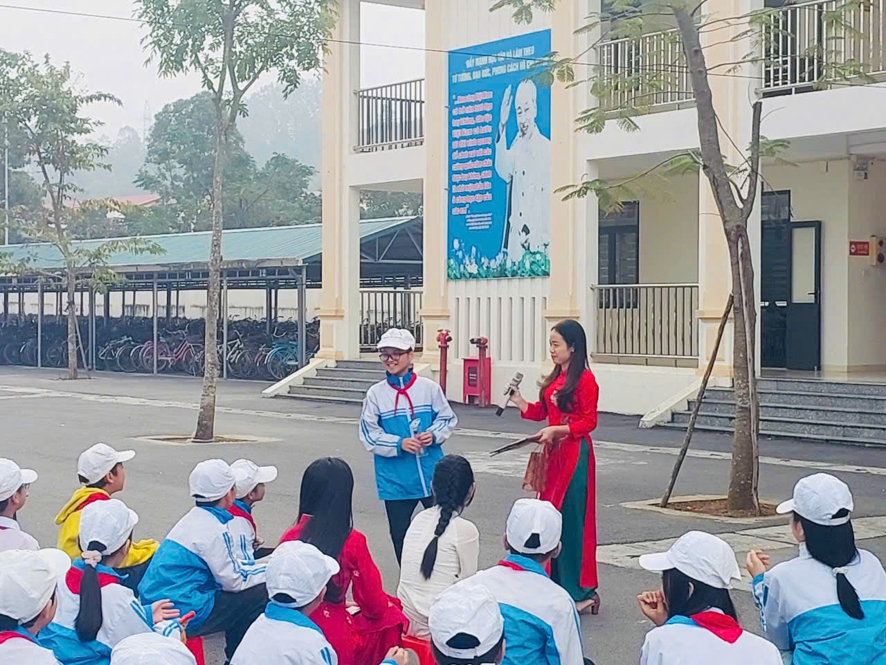 Sau những giây phút lắng đọng, không khí trở nên sôi nổi hơn với trò chơi tương tác “Theo dòng lịch sử”. Các em học sinh hào hứng giơ tay, cùng nhau tranh luận và hợp tác nhịp nhàng để giải đáp các câu đố. Thái độ hưởng ứng tích cực cùng tiếng cười reo vang khắp sân trường chính là minh chứng rõ nét nhất cho sức lan tỏa của chuyên đề – một sự kết hợp hoàn hảo giữa niềm vui học hỏi và tinh thần tri ân.